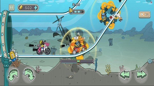 2.横版的挑战冒险风格也让玩家更加直观的可以享受到飞车带来的乐趣,游戏还添加了射击的玩法,大大加强了可玩性;