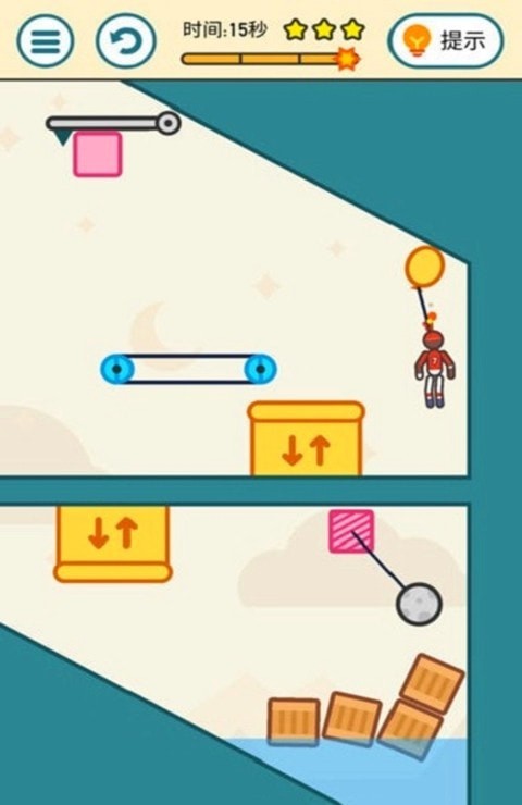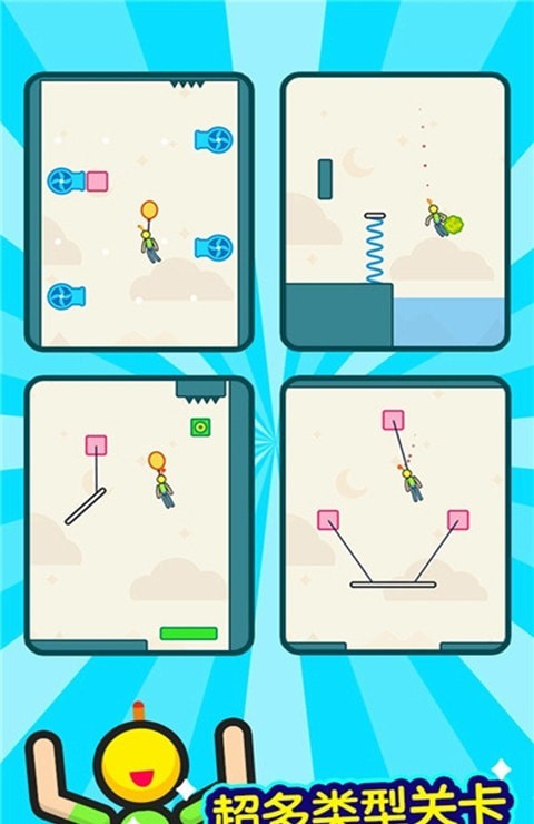 风趣十足的闯关手游,游戏中玩家需要将火柴人在原地爆炸之前进行解救。丰富的关卡设计,每一关都有不同的定位,创新的玩法,新颖的创造力,开动你的脑力智慧帮助火柴人进行闯关。