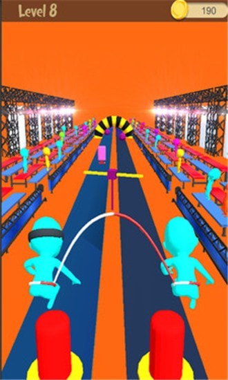 人类纤绳奔跑是一款超级好玩的动作,游戏中采用Q版动画的画风,游戏中玩家要去同时控制两位小人去躲避陷阱障碍物,玩起来还是有一定的难度的。