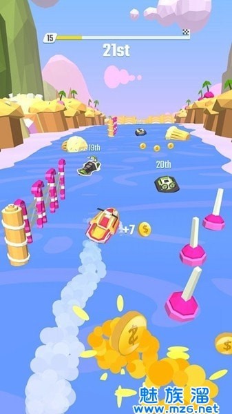 一款超好玩的游戏,玩家需要驾驶水上摩托艇,避开障碍物并收集金币,尽可能超越所有对手,到达终点并赢得比赛,长按屏幕加速,左右滑动屏幕避开障碍物,注意收集金币,在波浪和坡道的帮助下,我们可以实现更大的速度提升,感兴趣的下载去体验吧。