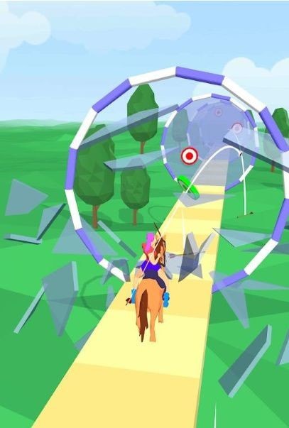 2、是一款以骑马射箭为主题的竞技游戏,你和对手都骑着马同时向终点冲刺;