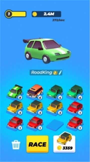 公路大碰撞是一款趣味解压的赛车合成游戏。游戏融合了赛车和合成的元素,玩家想要获得更高阶的汽车,需要通过合成低阶的汽车来获得,在拥有了自己的汽车之后将可以开始赛跑,注意不要被其它的汽车撞到,或者选择去撞毁其它的汽车。