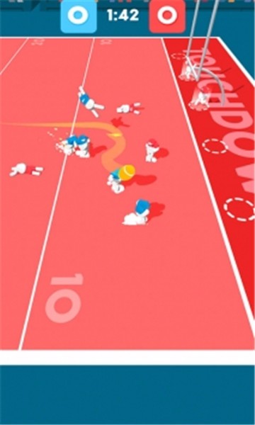 操作简单易玩,玩法魔性有趣,抢到橄榄球带领你的队员快速冲到终点