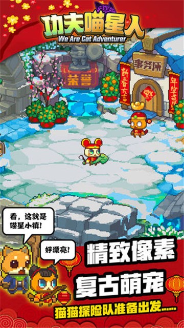 功夫喵星人是一款像素画面风格的休闲冒险游戏。游戏中有上百种猫咪可以进行挑选和培养,不同的猫咪有各自的技能,同时猫咪之间还有各种的羁绊来增强战斗能力,还有数量众多的战斗道具可以收集使用,快来游戏中进行冒险吧!