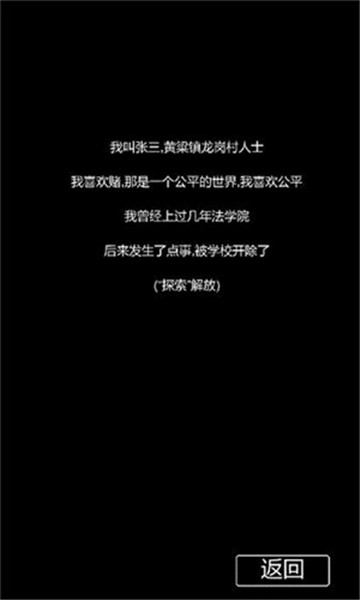 张三历险记是一款黑白简约风格的文字冒险游戏。玩家在游戏中将根据自己的选择来展开剧情。简单的游戏操作,环环相扣的游戏剧情,玩家在游戏中将需要根据蛛丝马迹来寻找其中的秘密。在这个看似简单的游戏中究竟隐藏着什么呢?