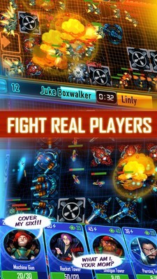 塔防决斗是一款多人联机的PVP塔防手游,玩家在游戏中进行实时多人对战匹配完成游戏,游戏拥有精致的画面制作,效果华丽的轰炸系统,玩家与玩家之间进行刺激紧张的PVP对战,多种不同种类的武器造就了不多不同的对战方法。