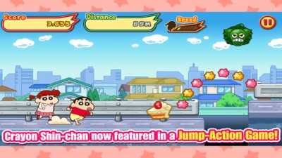 蜡笔小新春日宴是一款以蜡笔小新为游戏题材的横版跑酷游戏。小镇上开始下起了糖果雨,小新发现这是UFO造成的,玩家将控制着小新展开对糖果的追逐!在追逐的过程中有各种好吃的甜食可以增加玩家的积分,快来挑战吧!
