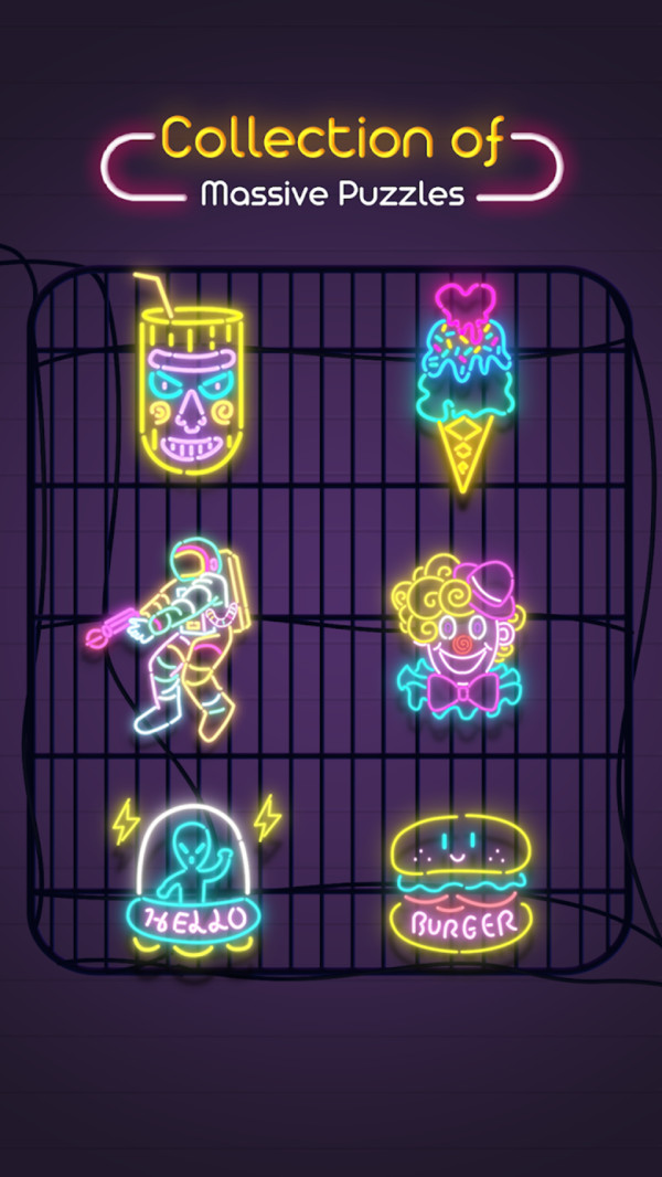 霓虹涂鸦是一款趣味性极高的休闲游戏,游戏的画风精致。玩家在具有网络朋克风格的背景。一堆挑战关卡,每张照片都是霓虹灯。在完成绘画之前,玩家将不知道要绘制的内容,所以玩法非常的有趣。游戏的关卡也是非常的多,喜欢的快点击下载吧。
