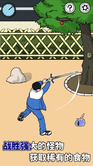 打开【厨房第二个柜子】,拿出【塑料盆】,来到【右边的后院】,【用盆捉到史莱姆】。取出【石中剑】,用剑挑落【树上的苹果】。回到【左边的厨房】,【把史莱姆放进冰箱,把苹果放进榨汁机】,【点一下榨汁机把苹果榨成汁】,【把冰镇后的史莱姆与苹果汁混合】,得到了奇怪的料理,拿给姐姐就好了