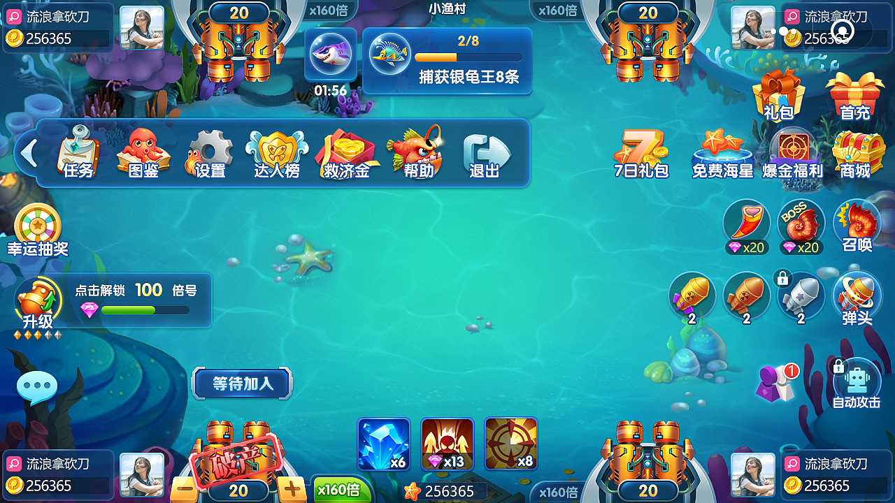 齐齐乐捕鱼还有挂机玩法,不过电脑捕捉的鱼类并不多,只适合没时间做日常的玩家来使用。