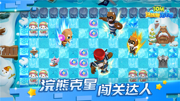 汤姆猫家族成员将化身泡泡战士,凭借着勇敢以及智慧,突破浣熊们设下的重重关卡,保卫“泡泡星球”和平。