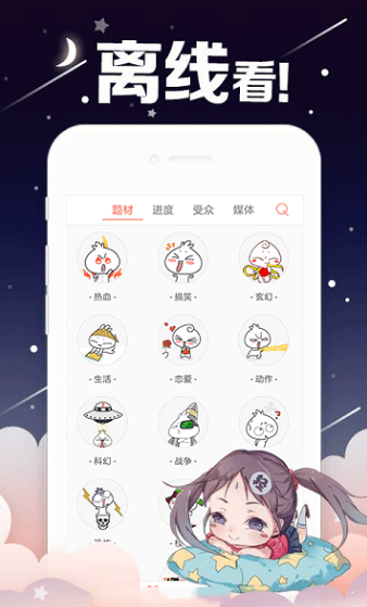 2. 在线+离线阅读,清晰画质:在线+离线阅读,从此告别蜗牛速,没有网络也能想看就看;独特的图片处理技术,节省更多空间,高清晰低内存的完美漫画,带给你别具一格的阅读体验;