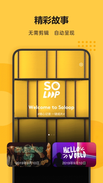 soloop即录是一款功能强大的一键式编辑软件,软件可用于拍摄手机视频。它免费提供最受欢迎的视频模板。用户可以通过导入原始视频来智能地编辑完整的短视频。简单操作使每个人都可以体验到视频编辑的乐趣,快来点击下载吧。