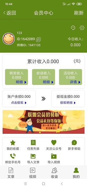 1、新人下载包菜资讯就送1元,转发文章单价全天1元/次;