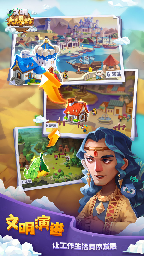 文明大爆炸是一款非常有趣味性的休闲游戏,游戏从蛮荒时代开始,随着时代的变更,你将在游戏中体验文明的发展,收集资源,为时代发展提供物资。还可以侵略其他玩家,扩张你的领土。让你的国家变得非常的强大。喜欢的快点击下载吧。