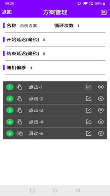 猫爪点击器保存的方案非常的方便管理,您可以侧滑删除,您还可以对已有的方案重新配置,可以在配置的过程中执行测试。