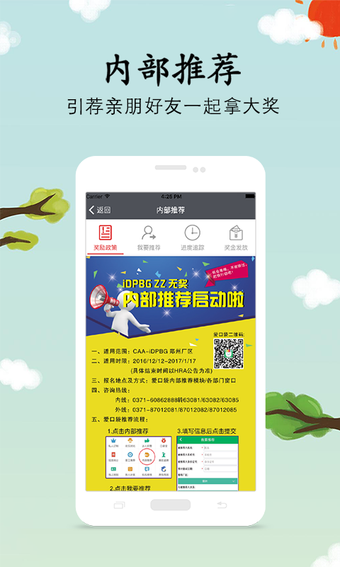 包含奖励政策、我要推荐、进度追踪、奖金发放、分享等功能