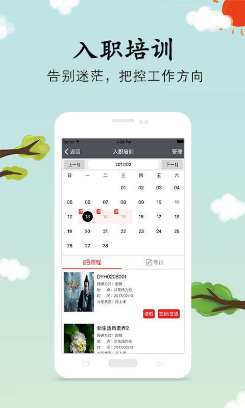 1.入职员工清晰明了的知道培训时间,内容等并进行线上签到签退