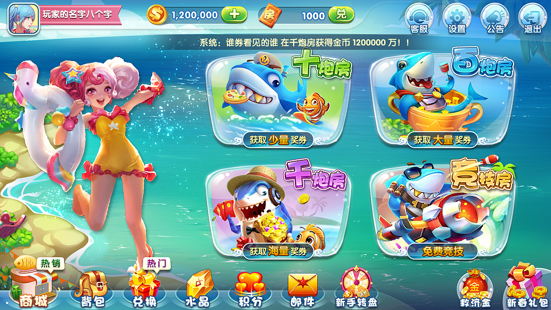 2、捕鱼道具众多,还有海量金币免费赠送,给玩家带来丰富多彩的游戏体验。