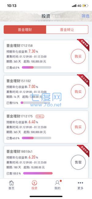 晋金所app是一款手机理财投资应用软件,方便用户在线选投。安全有保障。在该应用中投资可以随存随取,该平台投资门槛低,应用年化收益率高,在该应用中用户可以轻松进行理财投资,风险低,喜欢理财的用户赶快下载体验吧。