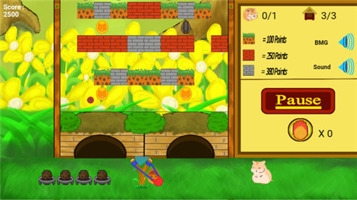 2、然后在它到达仓鼠家之前摧毁障碍物。 游戏中存在某些类型的障碍,你得打破他。