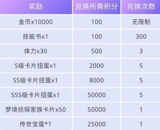 积分规则:p.s. 由于更新当天为周五,无法完成当前的每周任务,将在联动当天以邮件形式全服发放5万兑换积分
