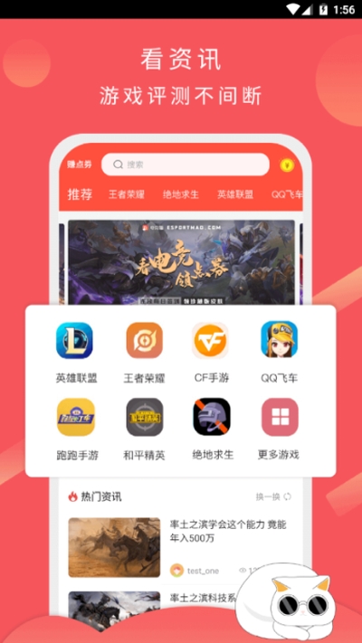 电竞猫app是一款专业的电竞资讯软件,在这里有着电竞的最新资讯,而且还能看到海量的游戏攻略与技巧,给你带来丰富的游戏体验,每一次都能提升技巧,还有各种热门话题可以一起讨论,一起探索,快来一起下载体验吧!