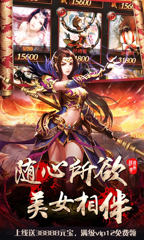 1、上线赠送满级vip12,绑定元宝38888,绑定金币300万。