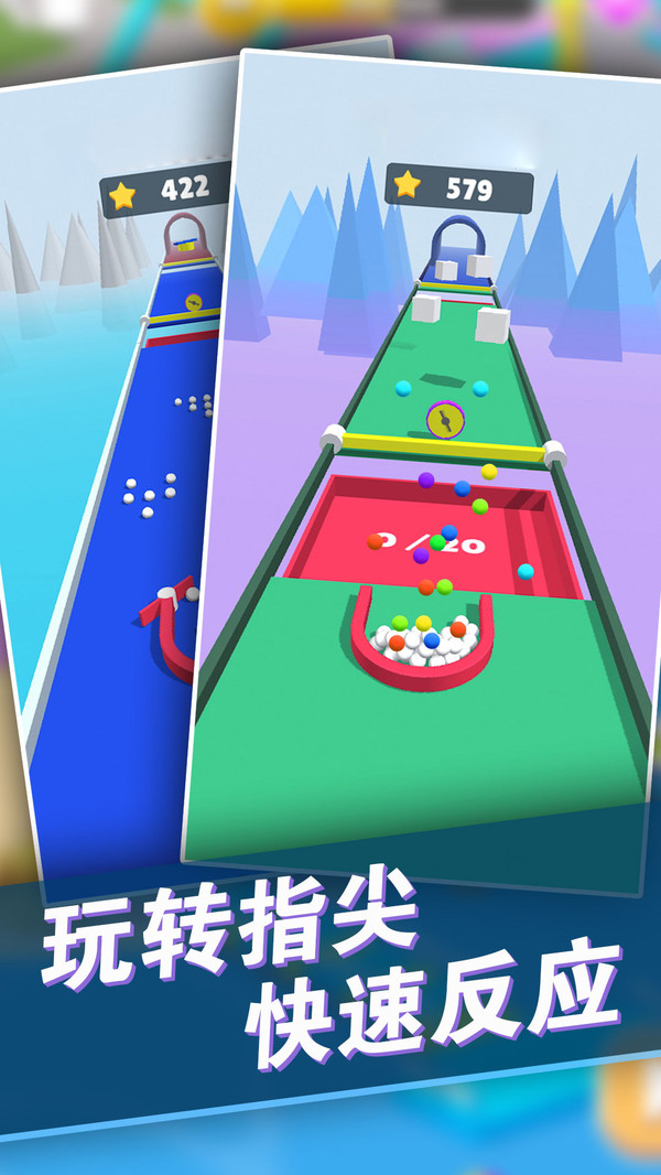 《球球推推乐》是一款快速反应类游戏,游戏操作非常简单,只需要控制着一个U型铁块,控制白色小球前行。
