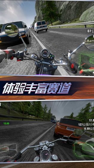 2、真实公路摩托锦标赛游戏背景音乐强大无比,各种操作带来的魅力也是巨大的,带有很承重的游戏沉浸感。