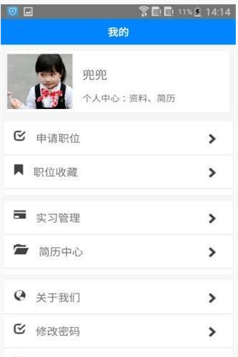 登录app,进入个人资料能看到自己的一些基本信息,包括头像,姓名,所在学校,专业,并且能够修改登录密码。