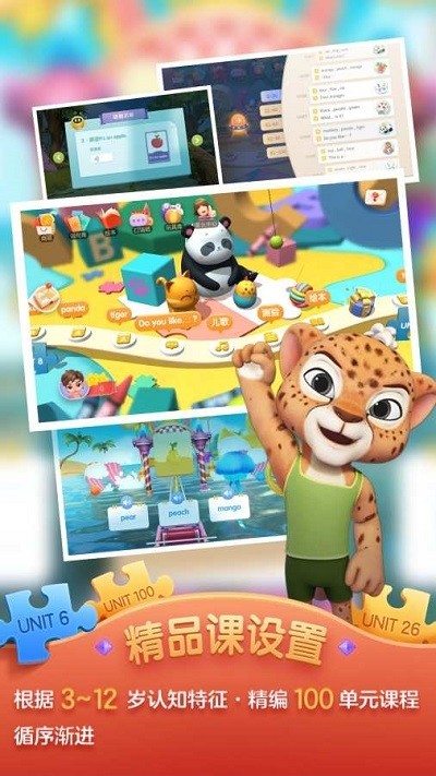 精品课设置:根据3-12岁儿童认知发展特征,精编100单元课程,循序渐进学英语。