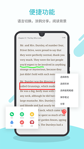 该软件每天推荐英文经典读物和英语图书资讯内容,丰富的英文书籍和双语对照。