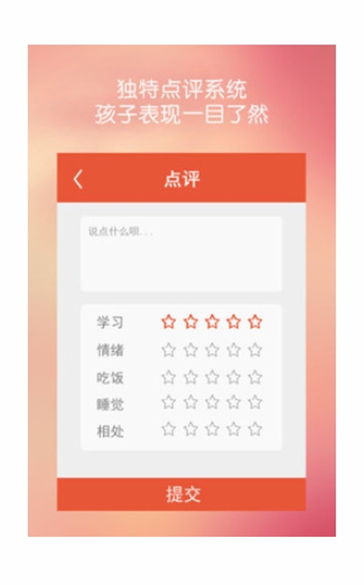 文字+图片style孩子,园内情况多面展现,独特点评系统,孩子表现一目了然,权威幼教知识中心,教育孩子的好帮手,每日签到系统,孩子接送安全有保障。