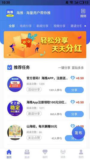 一款分享就能赚钱的app软件。全新的手机赚钱分红模式