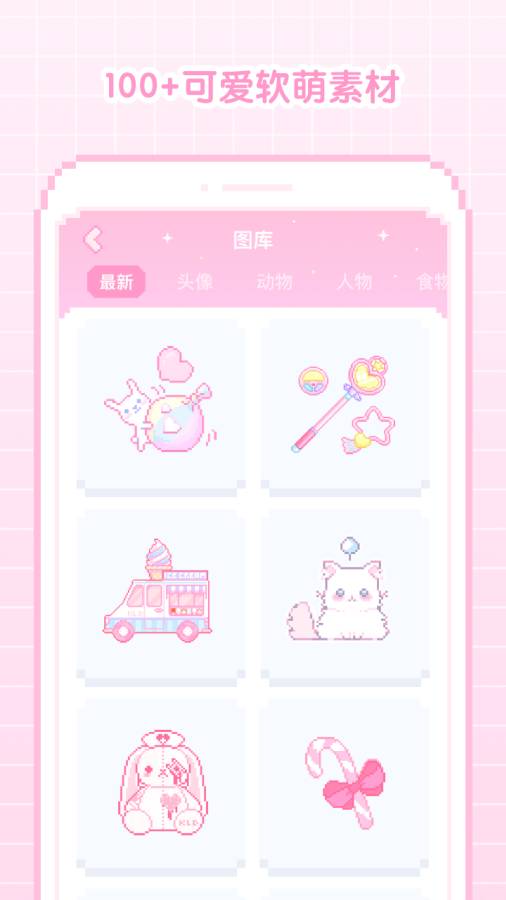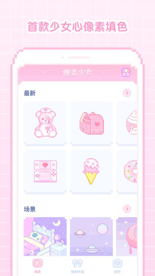 像素少女是一款有趣的填色游戏软件,软件提供了很多有趣的素材,都是特别少女心的东西,用户在线就可以填色,用户可以按照丰富的素材去完成像素画,这里也可以当做头像哦,这里简单有有趣,感兴趣的伙伴点击下载吧。