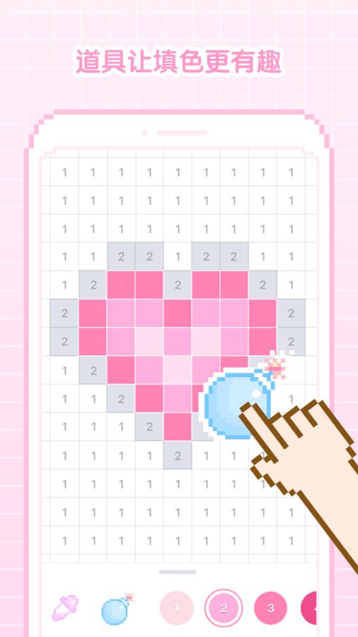 3、完成一幅幅像素画,不同难度的等级关卡,需要你的耐心