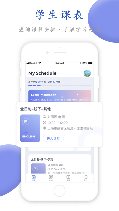 课表查询:查询课程安排,了解学习进度。