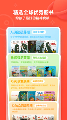 1、儿童分级阅读:采用专业分级阅读体系,从A~E阶带领孩子从阅读启蒙到独立阅读,培养终身阅读习惯,海量图书:全球正版图书、国内外中英文原版绘本,满足孩子的课外阅读需求。