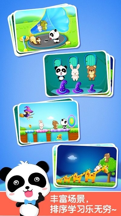 宝宝玩排序游戏官方版是一款由宝宝巴士推出的趣味益智儿童游戏,可以让小朋友们来更好的来学习知识,还是熟悉的小熊猫来和宝宝一起开始冒险,并且还有超多的小游戏帮助宝宝增长知识!喜欢的快来和我一起看看吧!