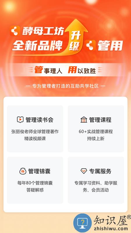 管用由创业酵母出品,是专为企业管理者打造的互助学习型APP。其中包含张丽俊老师的管理读书会,来自各企业管理实战专家带来的管理视频课程,以及帮助管理者解决日常管理难题的互助问答社区和管理锦囊。从企业经营、业务增长、团队管理、职业素养等各方面帮助管理者建立底层认知,学习职场技能,提升竞争力。