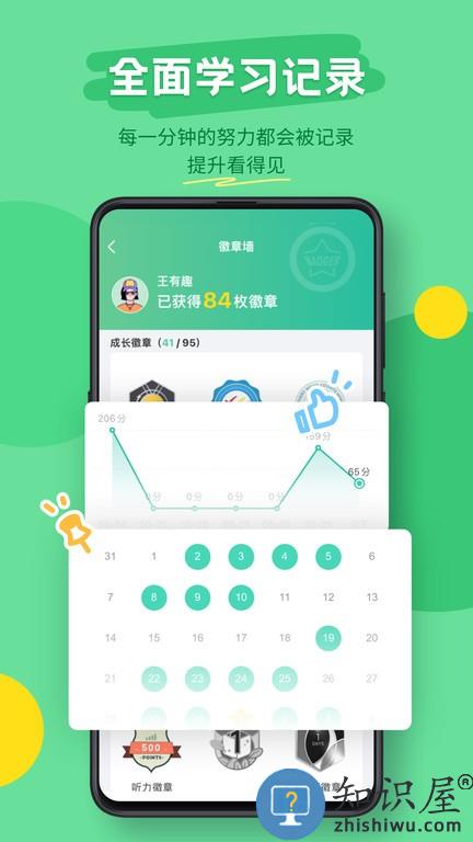·每篇文章你的得分,重听次数,都会被记录下来,日积月累,体现你的进步