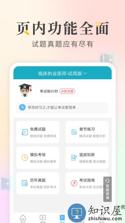 执业医师全新内容震撼上线,知识考点精讲、VIP课堂串讲、考试直播间、重点考点等功能将陆续推出,英腾教育,十二年医学教育品牌,独具优势的试题,押题密卷,考点梳理,高频错题已让广大考生青睐。