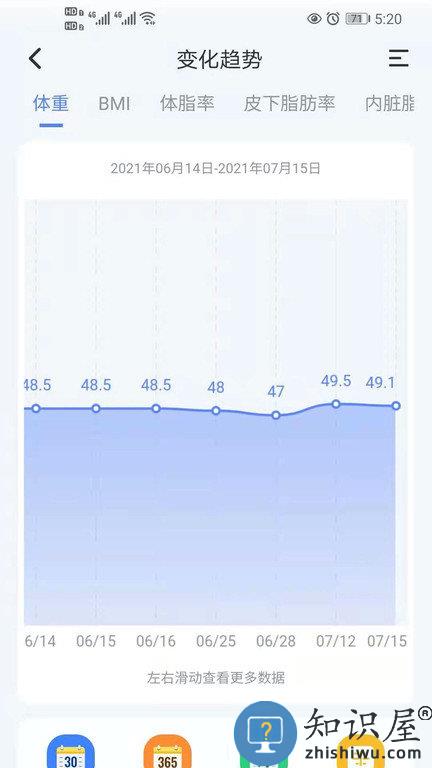 3、体重记录:用户可以在这里看到某一时间段中的体重波动记录,查询更直观。
