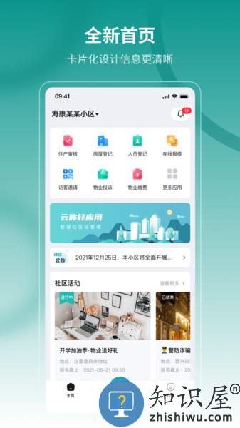 为2265住户提供访客预约、一键开门等快捷功能,以及社区公告、问题反馈、物业论坛等社区信息服务