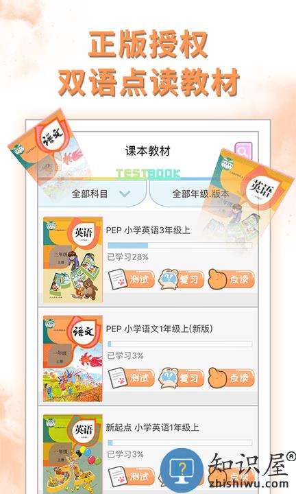 【大招六】全国小学课本全覆盖,课本支持中英双语点读、语音测评、课后练习,学习闯关三部曲提升孩子学习效率,并有单词默写等多种练习模式多方位助力孩子学习薄弱环节