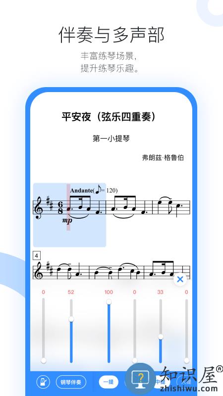 调音器、节拍器。钢伴与多声部乐谱播放,让练琴更有趣。