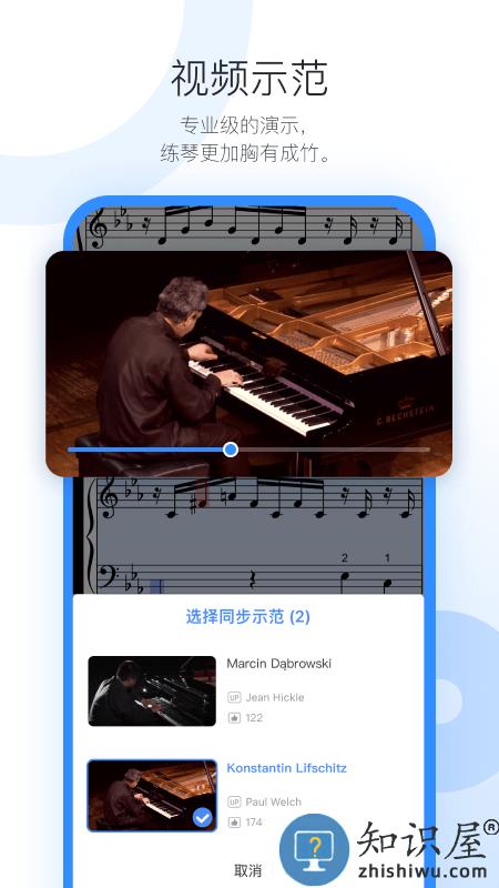 练习该乐曲。用户弹奏,app 会识别琴声,app「跟上」用户的弹奏进度。