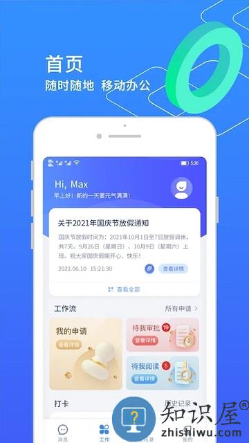一个十分轻便的办公应用,独特的im系统带你感受不一样的oa效率内容,软件能够帮助办公人员更好的处理工作事项,并且还有考勤打卡,请假审批等等功能,非常实用。