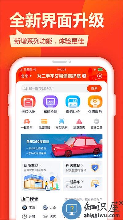 主界面全新视觉、全新交互,更方便您使用线上看车、检测下单、维保查询及估价、保修等服务。